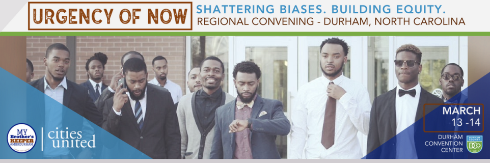 My Brother's Keeper Durham is proud to host a 2017 Cities United Regional Convening, Urgency of Now: Shattering Biases. Building Equity. The event is scheduled March 13-14, 2017 at Durham Convention Center in Downtown Durham. Day one of the two-day convening will include a half day focused on career exploration for boys and young men of color, ages 11-15. The career exploration event is an opportunity to expose young men to career pathways in the STEAM (Science, Technology, Engineering, Art, Math) fields and to provide connections between what they learn in school, future scholarship and career fields. Day two will offer MBK and Cities United communities from North and South Carolina an opportunity to gain the necessary tools to incorporate a racial equity lens into local policy, build youth leadership, and measure the impact of local capacity building.